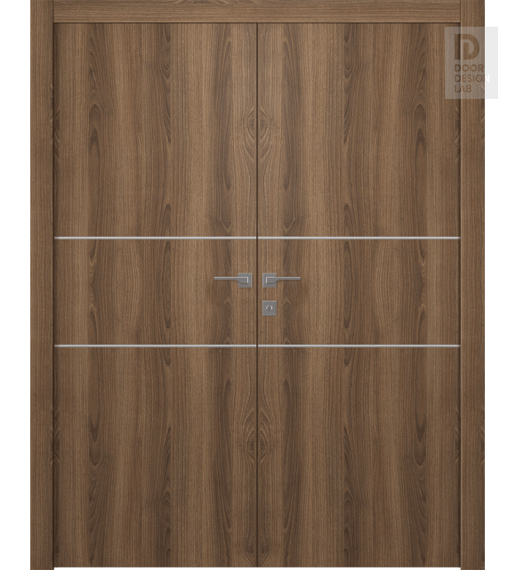 Optima 2H Pecan Nutwood Modern Interior Double Swing Doors by Belldinni