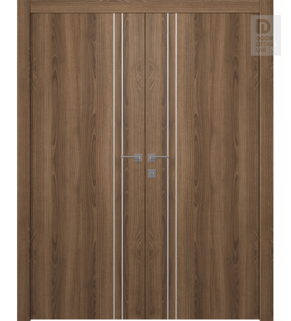 Optima 2V Pecan Nutwood Modern Interior Double Swing Doors by Belldinni