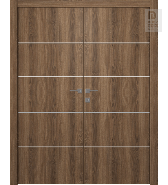 Optima 4H Pecan Nutwood Modern Interior Double Swing Doors by Belldinni