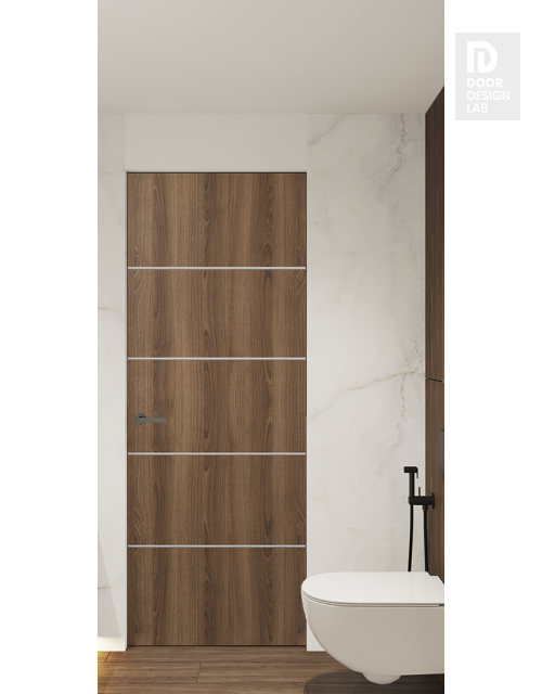 Modern design: Optima 4H combines the best trends in the door industry, including minimalist style, quality materials, and versatile shade. Pure Flush construction will favorably highlight the advantages of the surrounding interior while remaining a self-sufficient and striking element of home design. The distinctive feature of this interior door model is the four horizontal shiny aluminum strips, which form five equal-sized panels on the slab and create an elegant visual effect.