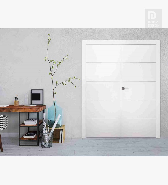 Optima 4H Snow White Modern Interior Double Swing Doors by Belldinni