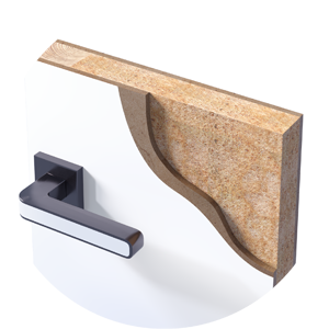 Door filling: engineered solid core is an innovative eco-friendly wood fiber material with 12.5 lb/ft³ density. It is responsible for soundproofing and keeping heat inside the room.