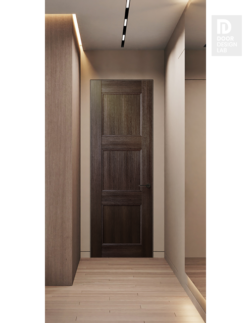 Door construction: stile and rail doors symbolize the best traditions of American craftsmanship. We use linear pieces of lumber assembled into a single structure to ensure the functionality and durability of the slab. Three recessed panels of the same size with two horizontal rails and a narrow fillet make this design a versatile option that can blend with a variety of decors.