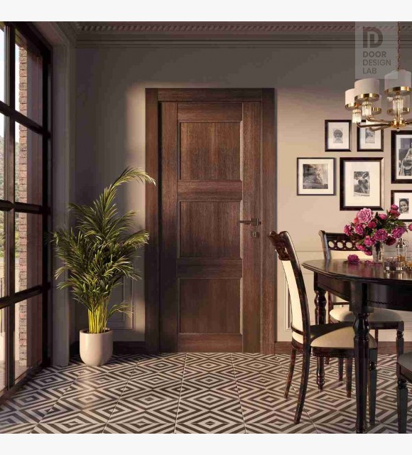 Door construction: stile and rail doors symbolize the best traditions of American craftsmanship. We use linear pieces of lumber assembled into a single structure to ensure the functionality and durability of the slab. Three recessed panels of the same size with two horizontal rails and a narrow fillet make this design a versatile option that can blend with a variety of decors.