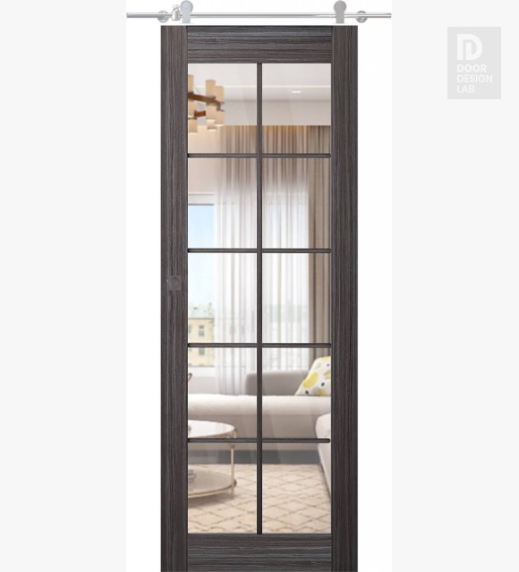 Palladio 10 Lite Clear Vetro Gray Oak Modern Interior Barn Door by Belldinni