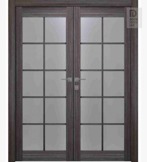 Palladio 10 Lite Vetro Gray Oak Modern Interior Double Swing Doors by Belldinni