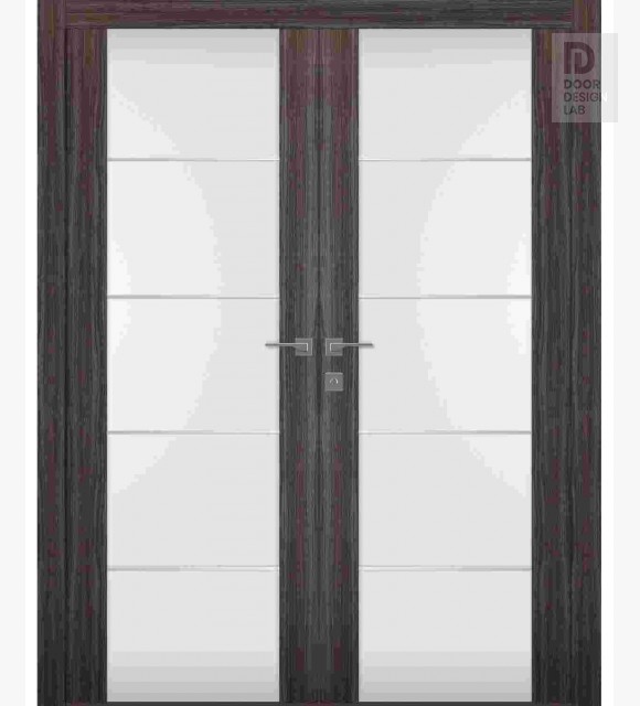 Palladio 202 4H Vetro Gray Oak Modern Interior Double Swing Doors by Belldinni