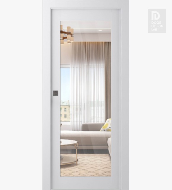 Palladio 207 Clear Vetro Bianco Noble Modern Interior Pocket Door by Belldinni