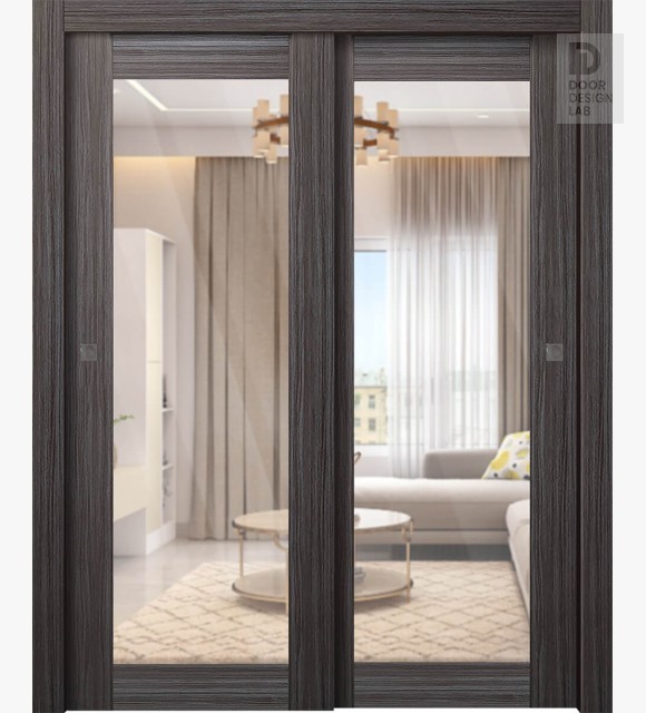 Palladio 207 Clear Vetro Gray Oak Modern Interior Bypass Doors by Belldinni
