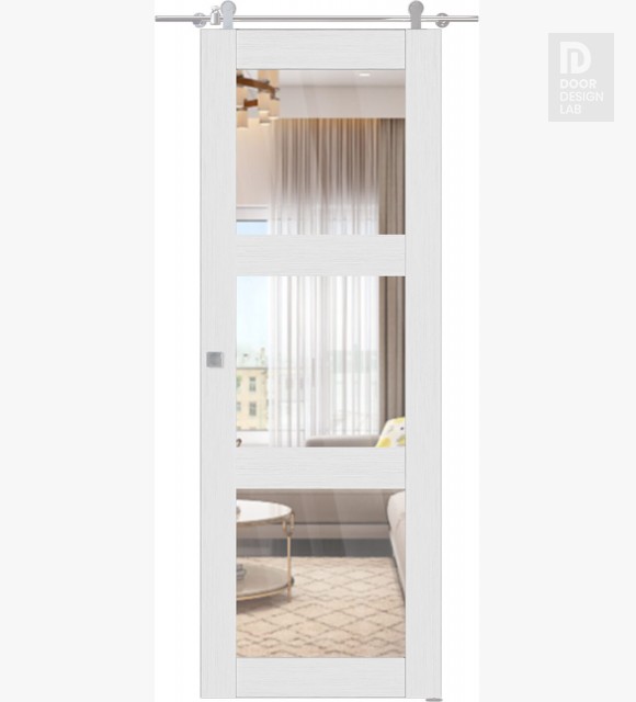 Palladio 3 Lite Clear Vetro Bianco Noble Modern Interior Barn Door by Belldinni