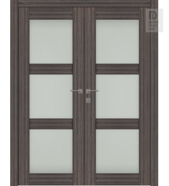 Palladio 3 Lite Vetro Gray Oak Modern Interior Double Swing Doors by Belldinni