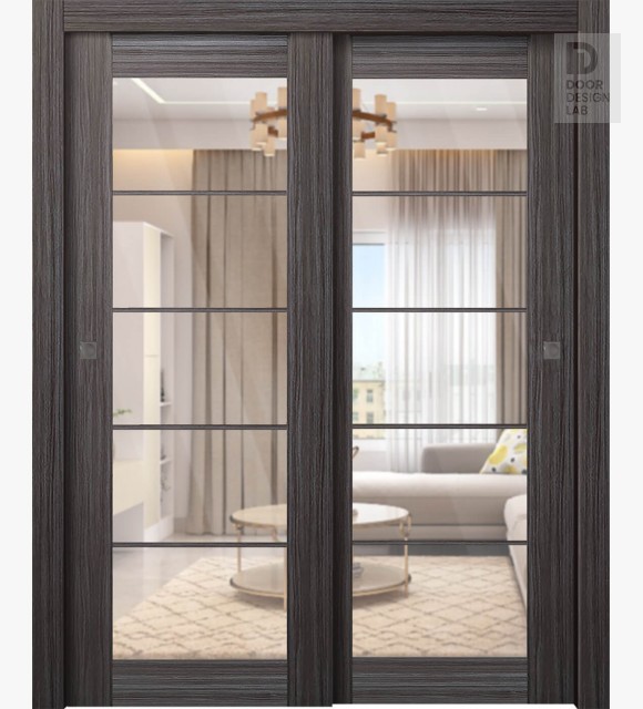 Palladio 5 Lite Clear Vetro Gray Oak Modern Interior Bypass Doors by Belldinni
