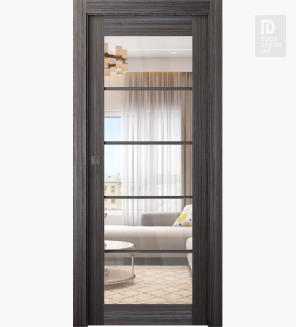 Palladio 5 Lite Clear Vetro Gray Oak Modern Interior Pocket Door by Belldinni