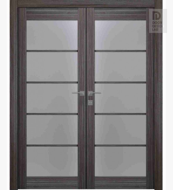 Palladio 5 Lite Vetro Gray Oak Modern Interior Double Swing Doors by Belldinni