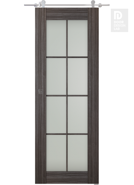 Palladio 8 Lite Vetro Gray Oak Modern Interior Barn Door by Belldinni