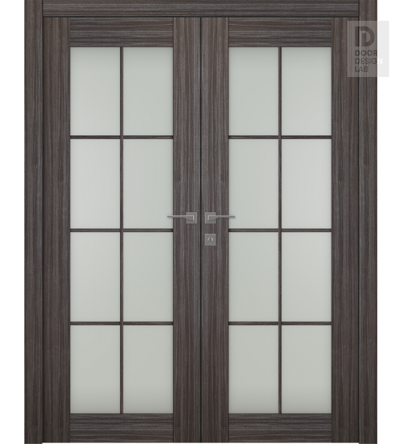 Palladio 8 Lite Vetro Gray Oak Modern Interior Double Swing Doors by Belldinni