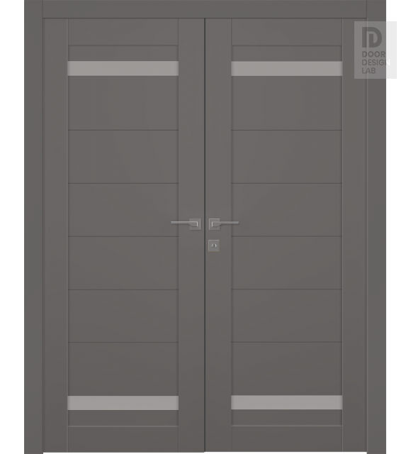 Perla Vetro Gray Matte Modern Interior Double Swing Doors by Belldinni