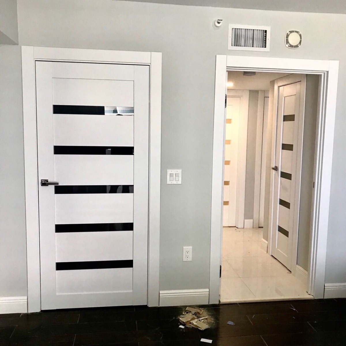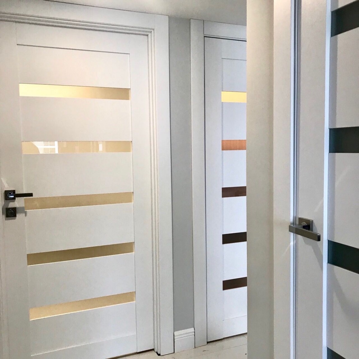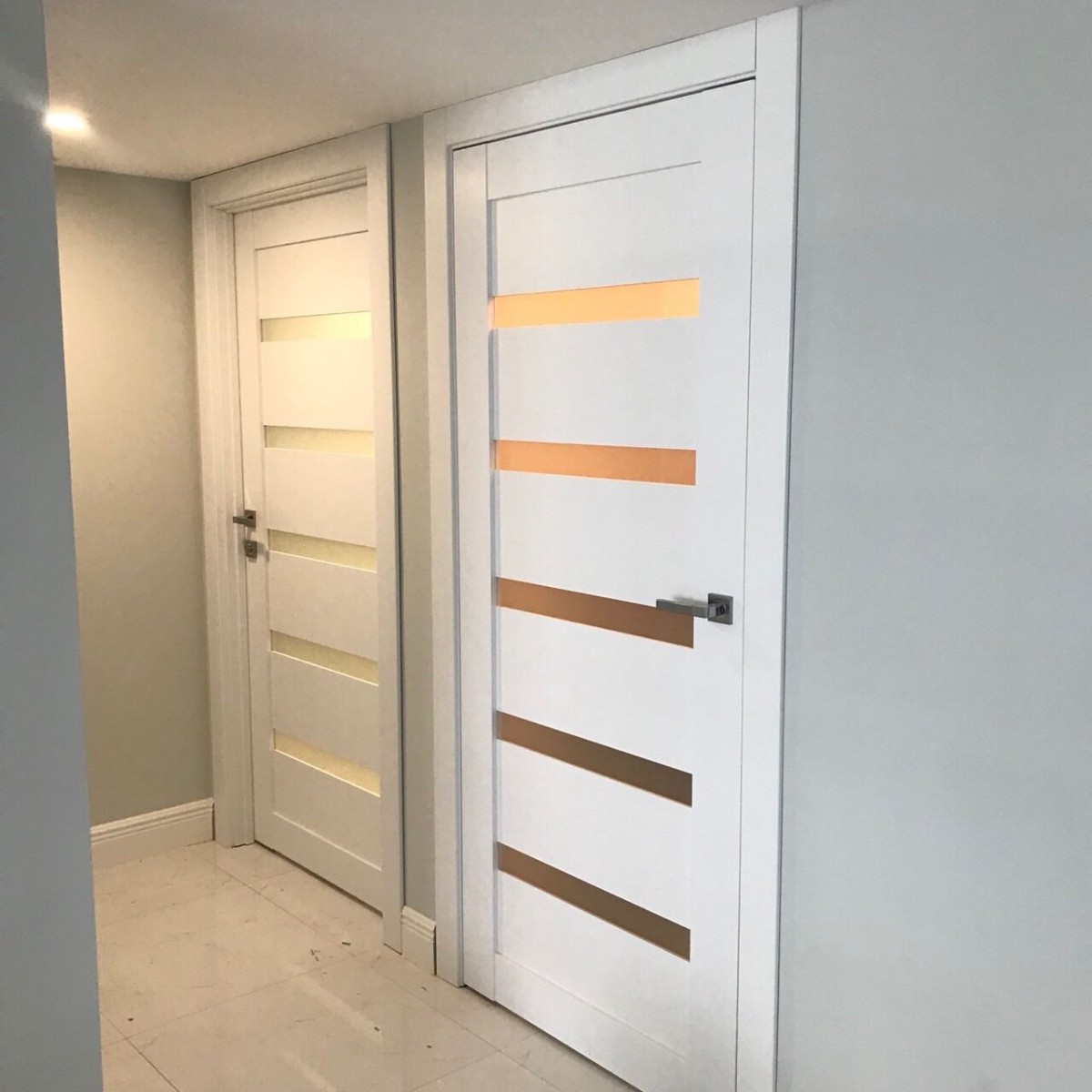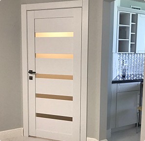 The central motifs of the Leora Vetro are clear lines and a minimalistic style. The elegant decoration of the interior door is five glass inserts of the same size, which, together with the noble shade of the slab, will look harmoniously in any interior and fill your room with light.