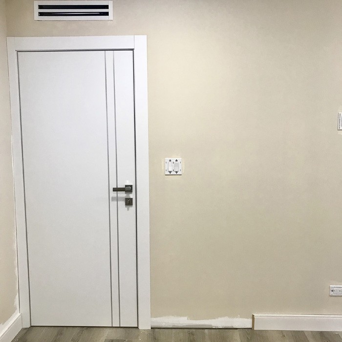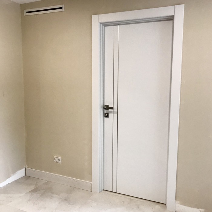 Optima 2V combines the best trends in the door industry, including minimalist style, quality materials, and versatile shade. Pure Flush construction will favorably highlight the advantages of the surrounding interior while remaining a self-sufficient and striking element of home design. The distinctive feature of this interior door model is the two vertical shiny aluminum strips that create an elegant visual effect.