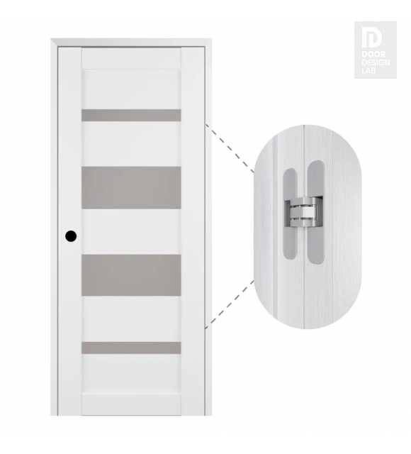 RTA RIGHT HAND PREHUNG CONCEALED DOOR SLAB MIRELLA VETRO BIANCO NOBLE 18" X 80" X 1 9/16" FROSTED GLASS
