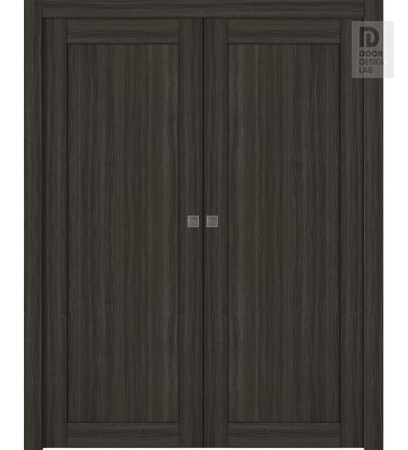 Shaker 1 Panel Gray Oak Modern Interior Double Pocket Doors by Belldinni