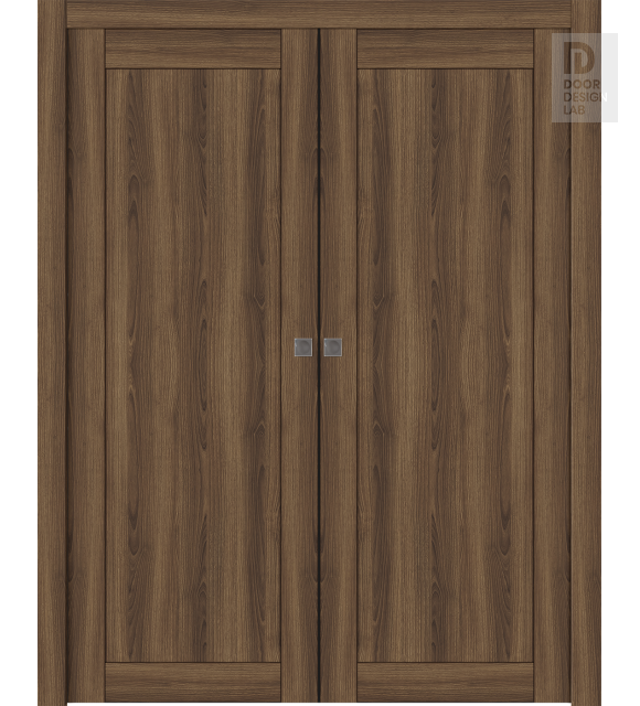 Shaker 1 Panel Pecan Nutwood Modern Interior Double Pocket Doors by Belldinni