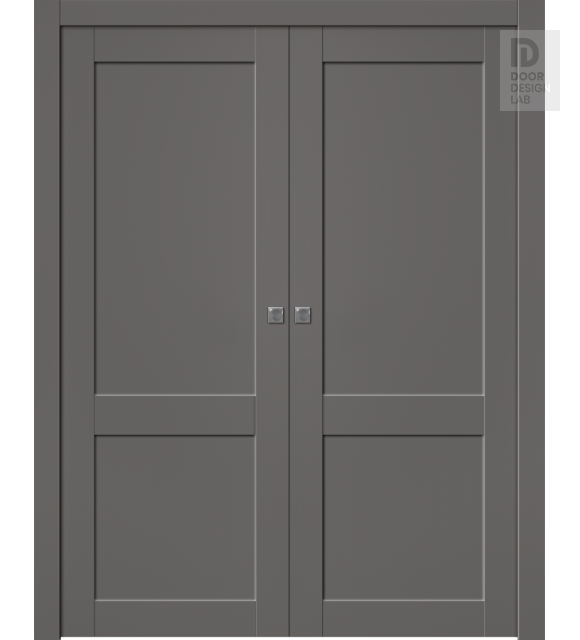Shaker 2 Panel Gray Matte Modern Interior Double Pocket Doors by Belldinni