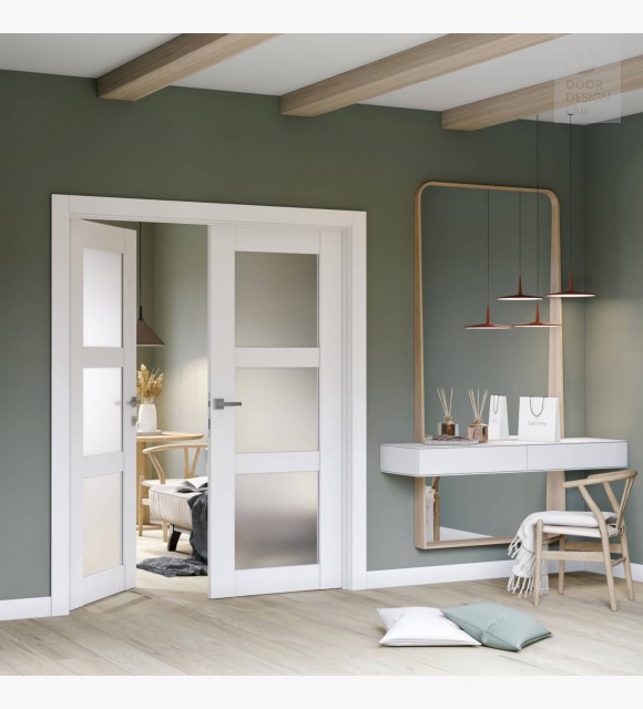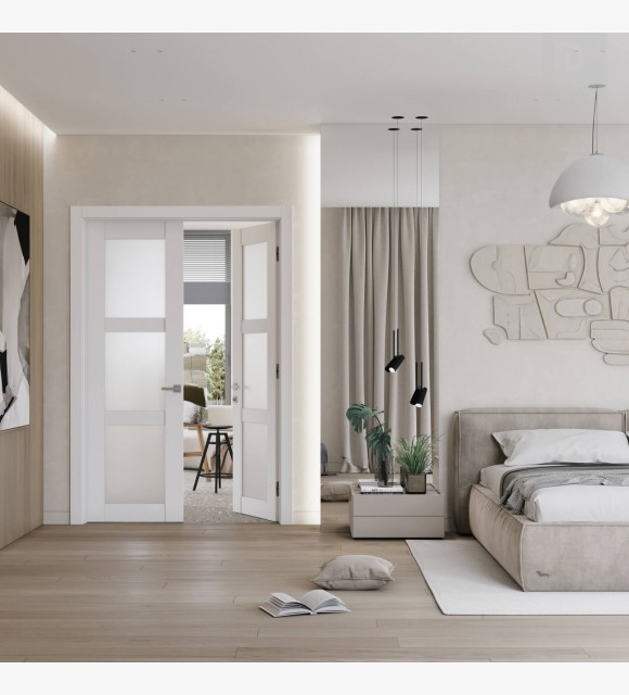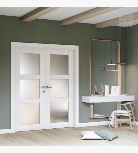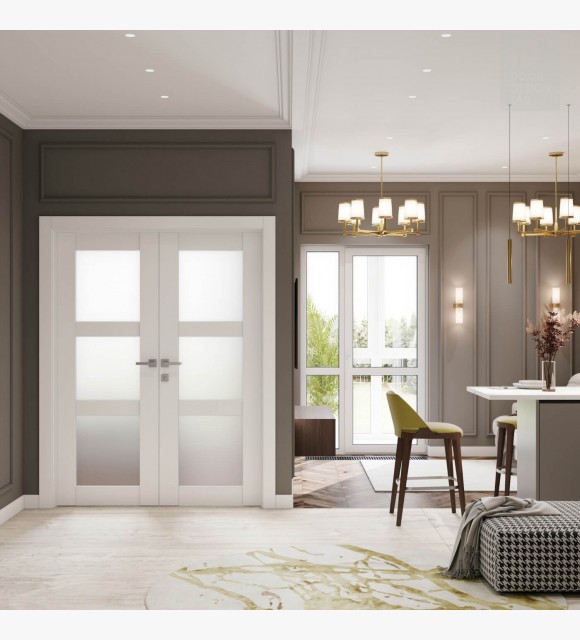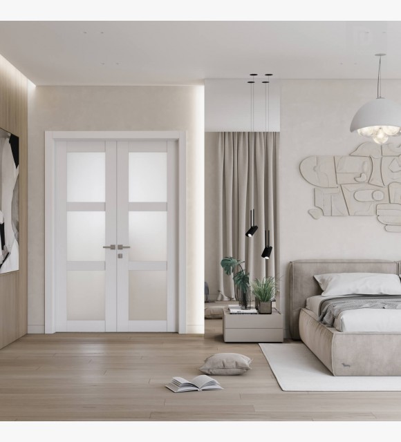 Smart Pro 3 Lite Vetro Polar White Modern Interior Double Swing Doors by Belldinni