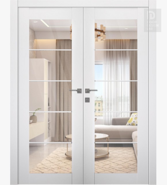 Smart Pro 5 Lite Clear Vetro Polar White Modern Interior Double Swing Doors by Belldinni