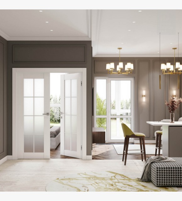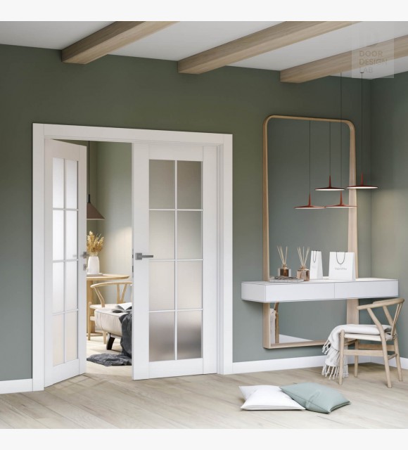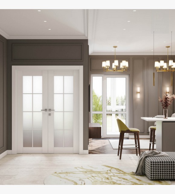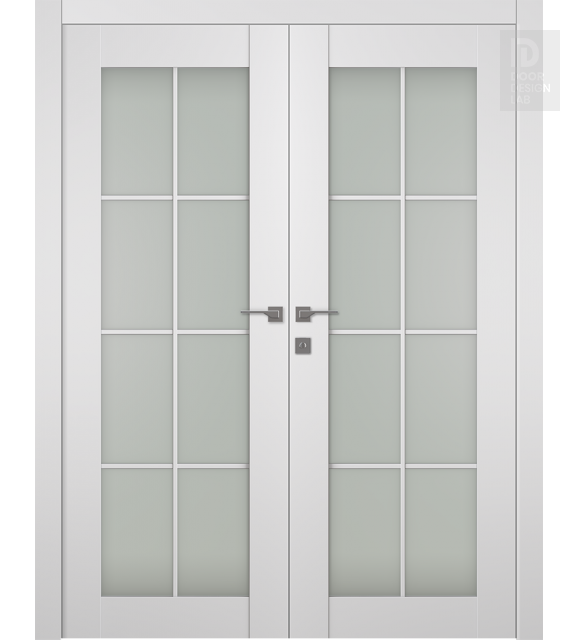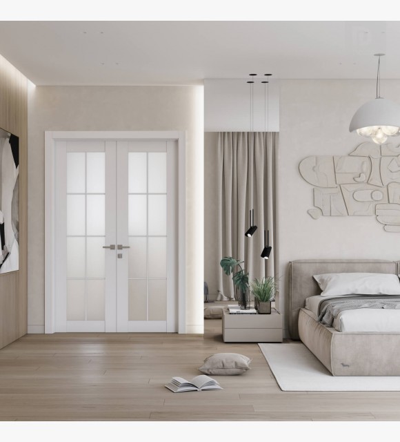 Smart Pro 8 Lite Vetro Polar White Modern Interior Double Swing Doors by Belldinni