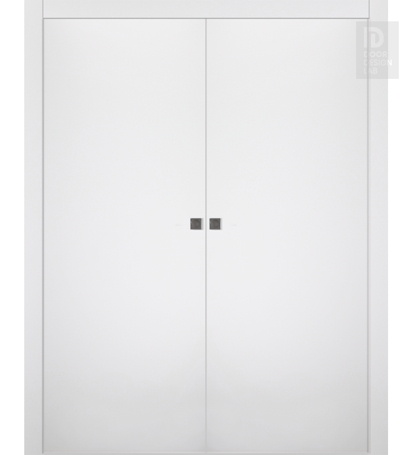 Smart Pro Flat Polar White Modern Interior Double Pocket Doors by Belldinni