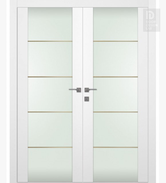 Smart Pro H3g 4H Gold Strips Vetro Polar White Modern Interior Double Swing Doors by Belldinni