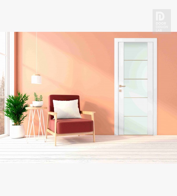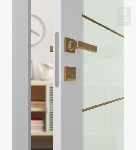 Modern design: Smart Pro H3G 4H Gold Strips Vetro is inspired by Scandinavian interior design, characterized by simplicity and functionality. The glazed door has a bright, modern appearance that creates a sense of light and spaciousness in the living space while maintaining privacy in the room. The distinctive feature of this interior door model is the four horizontal gold aluminum strips that create an elegant visual effect.
