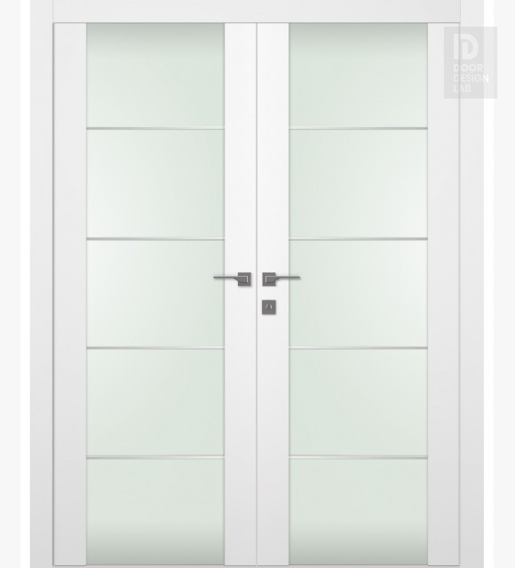 Smart Pro H3g 4H Vetro Polar White Modern Interior Double Swing Doors by Belldinni