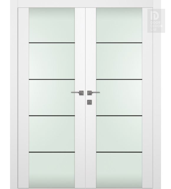 Smart Pro H3g 4H Black Strips Vetro Polar White Modern Interior Double Swing Doors by Belldinni